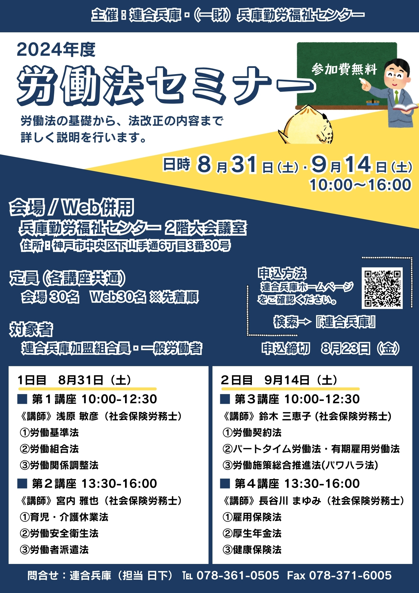 2024年 連合兵庫 労働法セミナー (Zoom&会場) Peatix特設ページでYouTube動画アーカイブ配信
